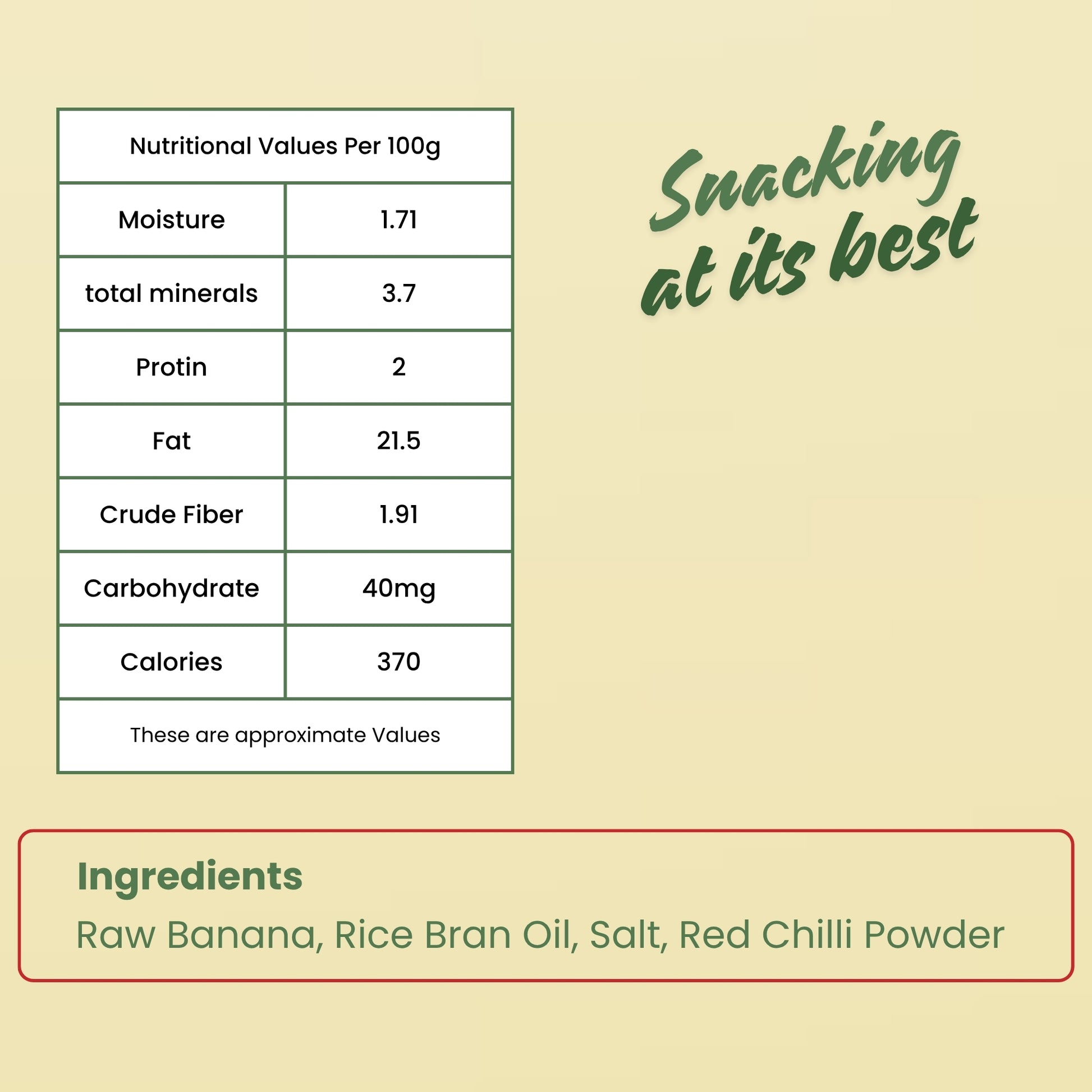 Spice up your snack time with our crunchy and flavourful Red Chilli Banana Wafers. Made from high quality raw bananas and fried to golden perfection, these wafers are seasoned with a special blend of red chilli that delivers a punch of heat with every crunchy bite.
