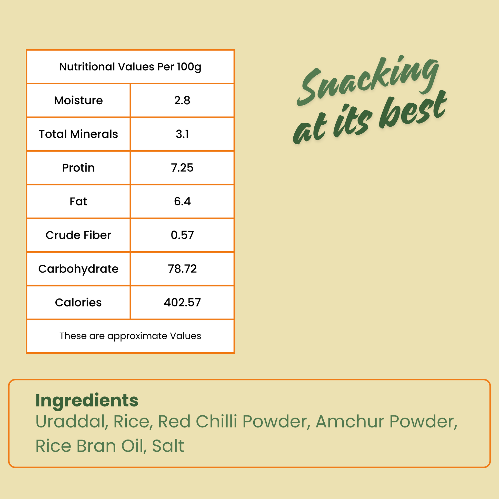 Love that extra kick of spice? Our Chilli Chaska Dosa Khakra is just what your taste buds need! Crafted from a traditional dosa base made with urad dal and rice, this unique khakra is roasted to crisp perfection and infused with the bold flavors of red chilli powder and tangy amchur (dry mango) powder.