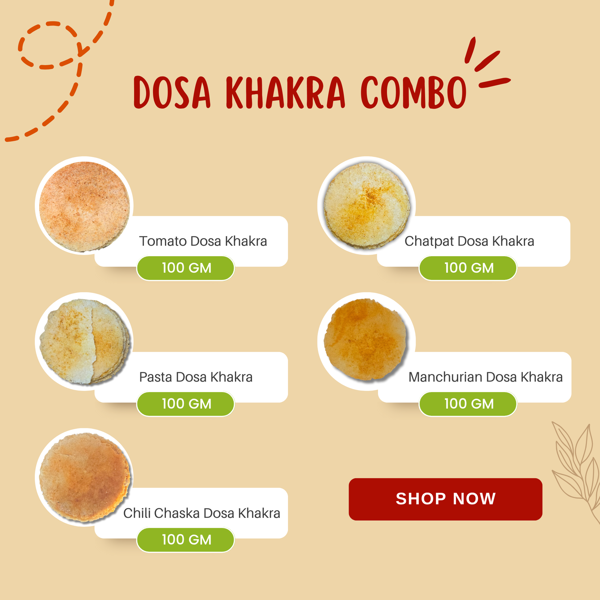 Love dosas? You’ll love them even more in our crispy Khakhra avatar! The Dosa Khakhra Combo brings together exciting, fusion-inspired flavors that will make your snack time anything but boring.
